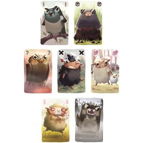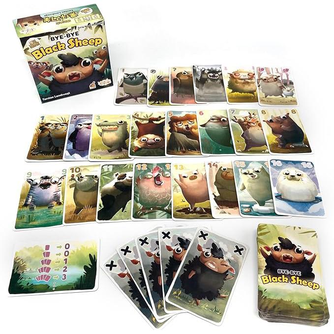 In Bye Bye Black Sheep, players aim to collect the same animal cards from each other. The first player to own a specific number of animal triplets wins!