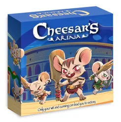 Cheesar's Arena is a light abstract strategy game with a lot of interaction and 'schadenfreude’ between players. It features custom printed dice & meeple components and an illustrated rulebook to learn the game in a jiffy.