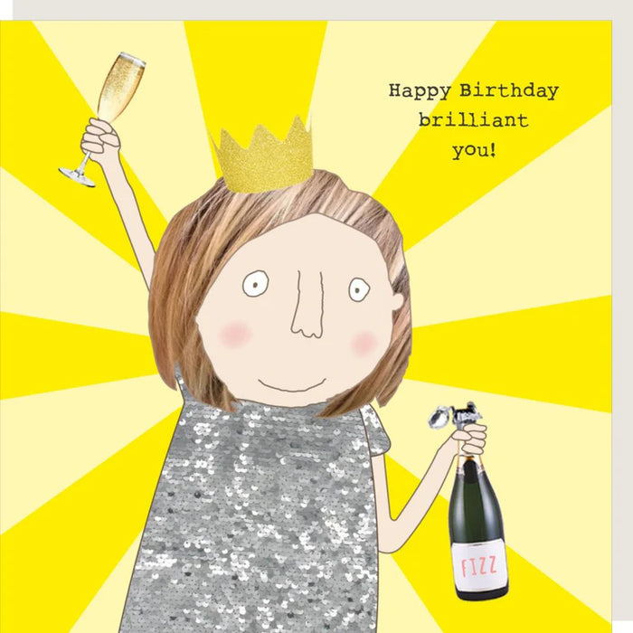 A little ray of birthday sunshine! This birthday card for her is perfect for friends or relatives to celebrate their special day. The card reads ‘Happy Birthday brilliant you!’ and is blank inside for your own message.
