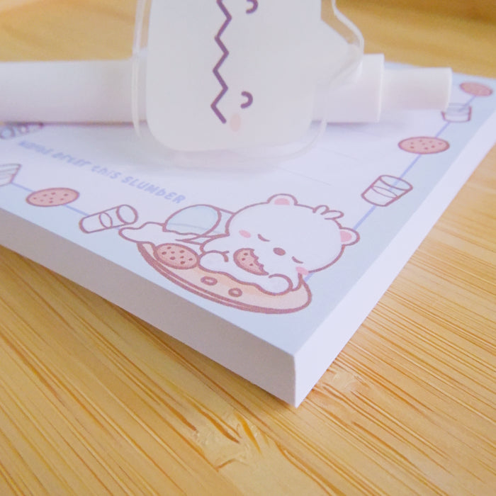 To do or to snooze~ Embrace the dilemma with these adorable Snooze Haven Memopads. Comes in 3 different designs featuring Dachi, Bunbun and Olla!! Each pad comes with 50 sheets (7.5x7.5cm) of snoozy goodness!!!