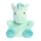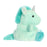 Tilly features a plush, teal body shimmering with subtle sparkles, crowned with a gleaming, iridescent horn. Her eyes sparkle with kindness, and her mane is a fluffy wave of turquoise, inviting hugs and dreams.
