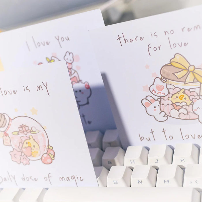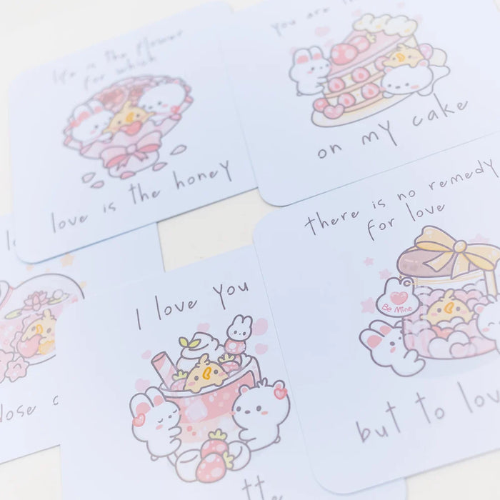 Nothing more cheesy, sweet and loving than these love quotes paired with Dachi, Bunbun and Olla~ A perfect note for that special or significant someone to let them feel the warmth!! They are printed on durable 300gsm art paper, around ~10.8x10.8cm.